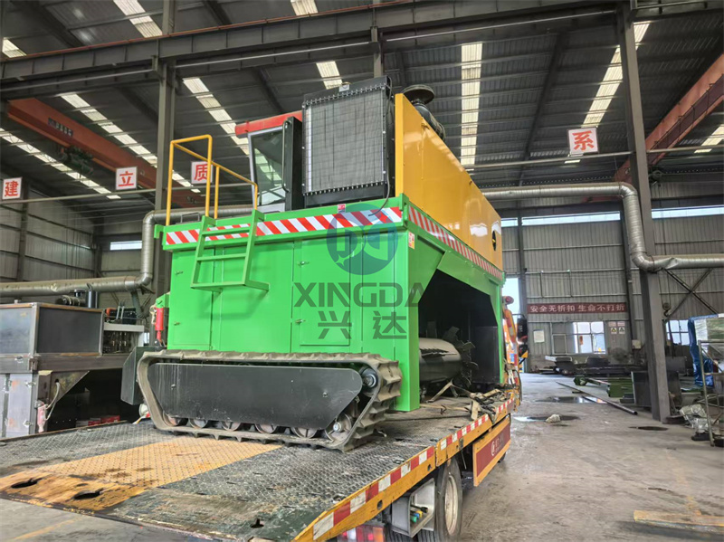 一车有机肥履带翻抛设备准备开离有机肥设备厂区
