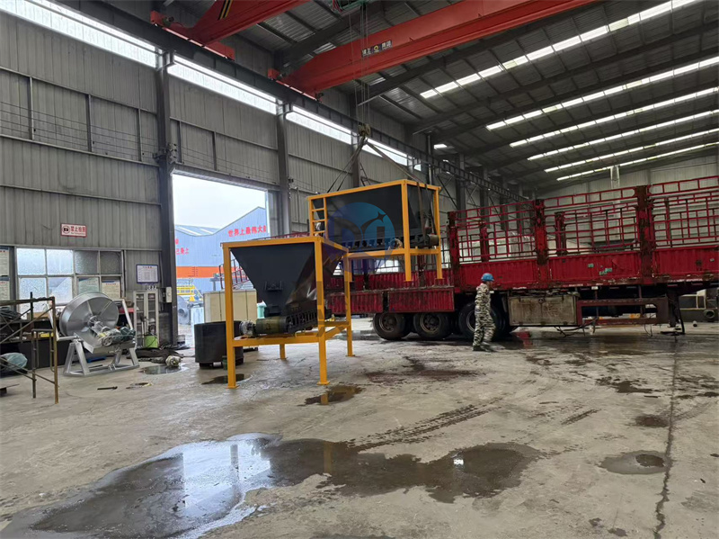 泰安用户粉状有机肥料的有机肥铲车设备及搅拌设备正在车间进行装车