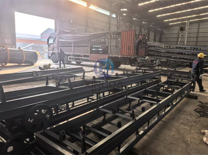 一车有机肥皮带输送设备正在车间进行装车